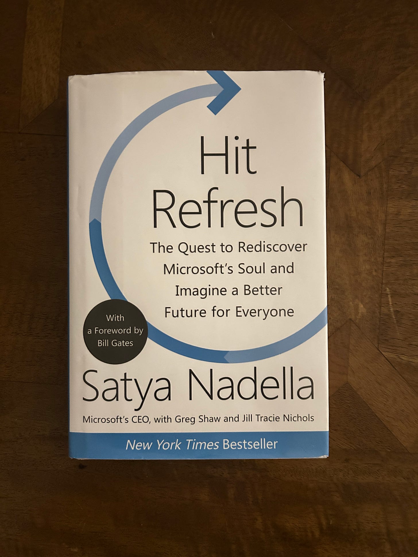 Hit Refresh by Satya Nadella is part memoir, part manifesto about transformation. Somewhat personal, somewhat corporate and cultural. Nadella writes about leading Microsoft through change, but also about empathy and curiosity as tools of leadership.